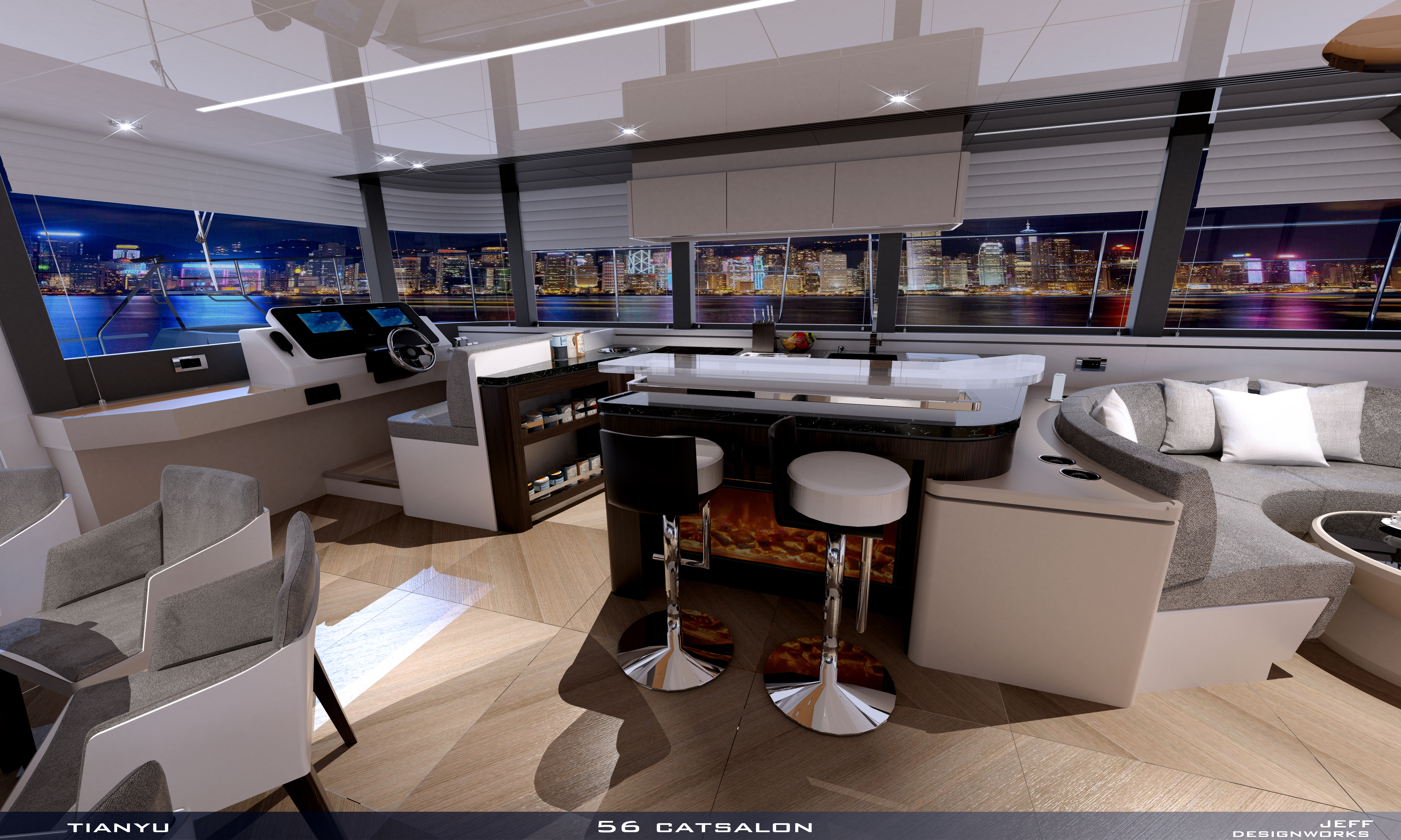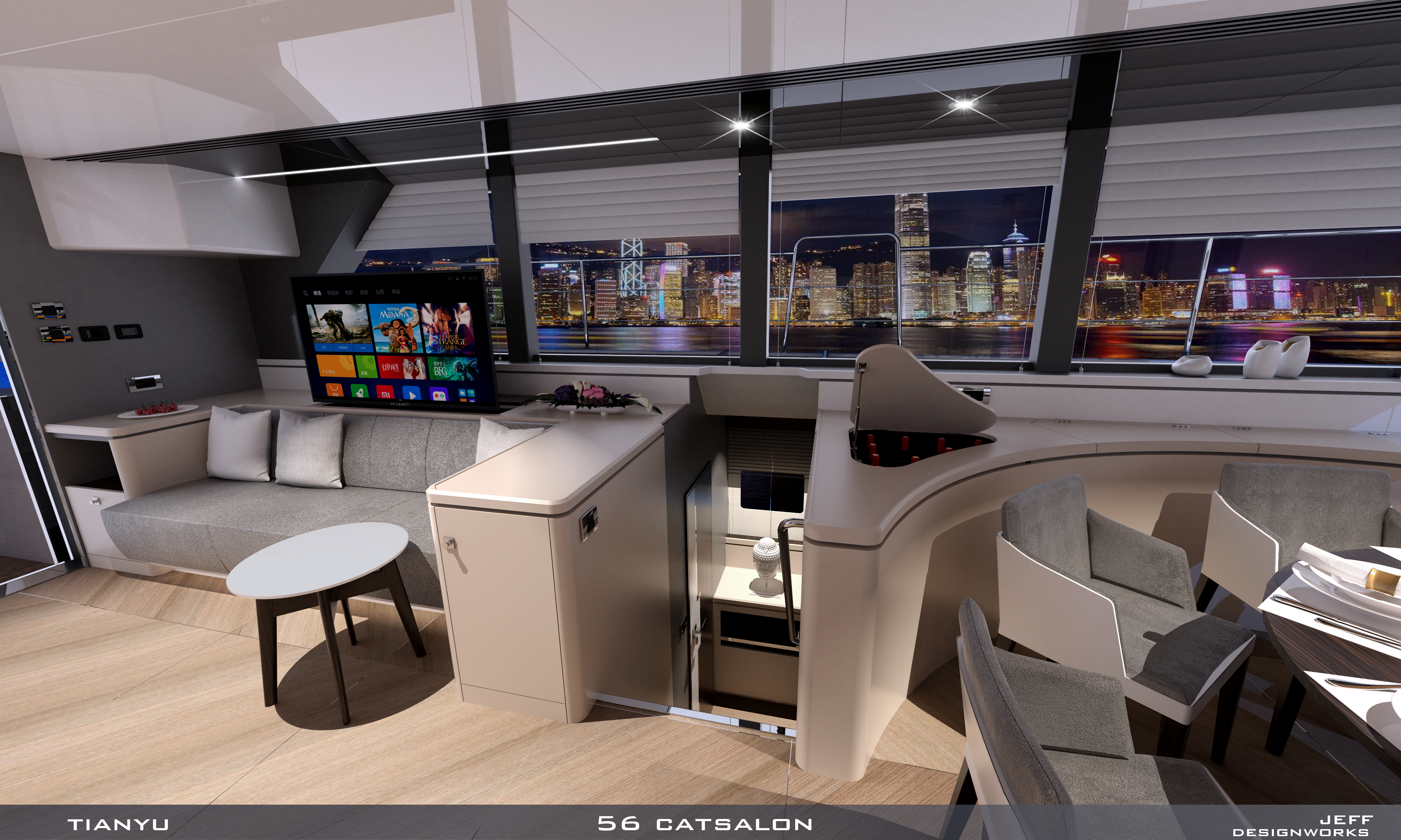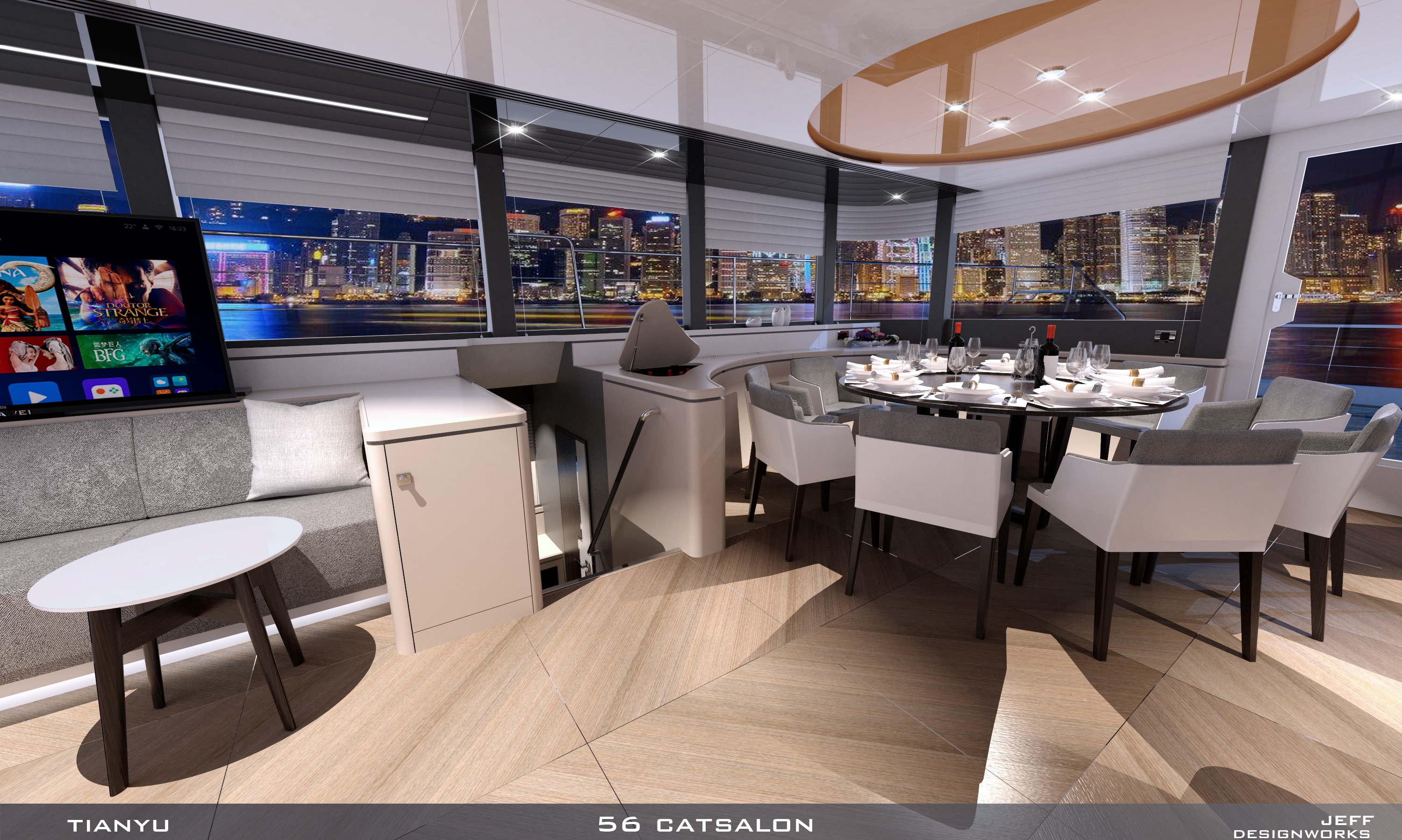 天域TY560C雙體船通過利用空間設(shè)計(jì)及甄選藝術(shù)品的點(diǎn)綴升華