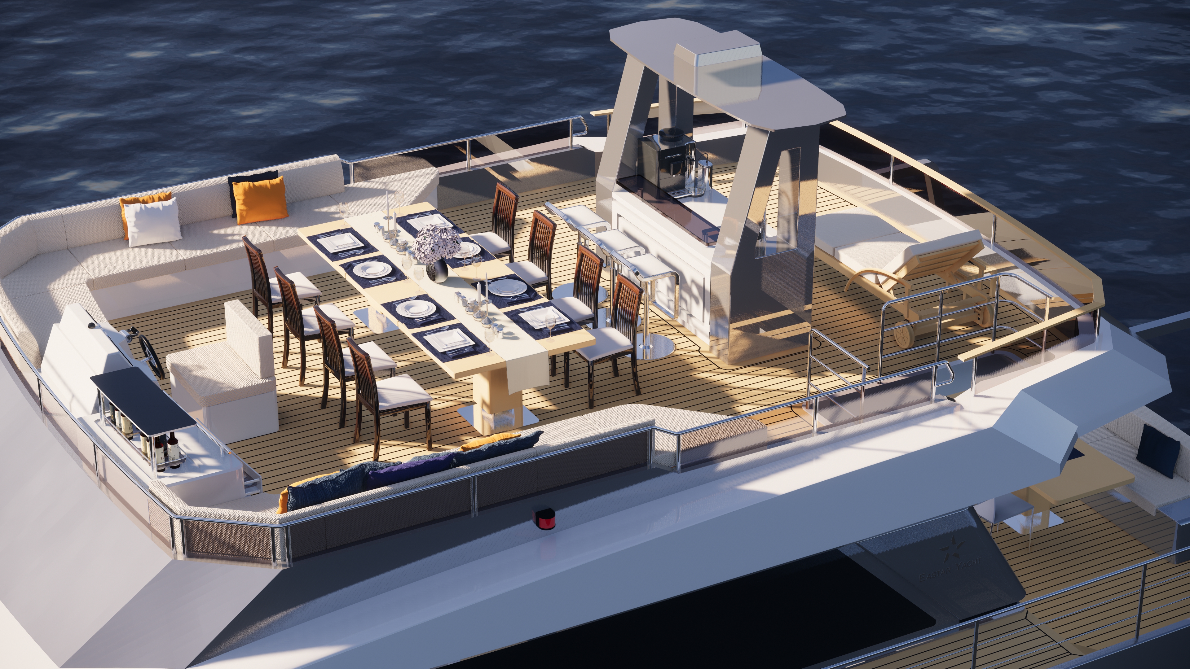飛橋甲板分為不同的功能區(qū)域:娛樂區(qū)、餐飲區(qū)、活動(dòng)區(qū),飛橋駕駛臺(tái)旁邊更是配備了升降酒柜。在設(shè)計(jì)師眼里,這里沒有人為的限制,更沒有過時(shí)的規(guī)范,空間銜接處也是簡而有韻,有神有型。
