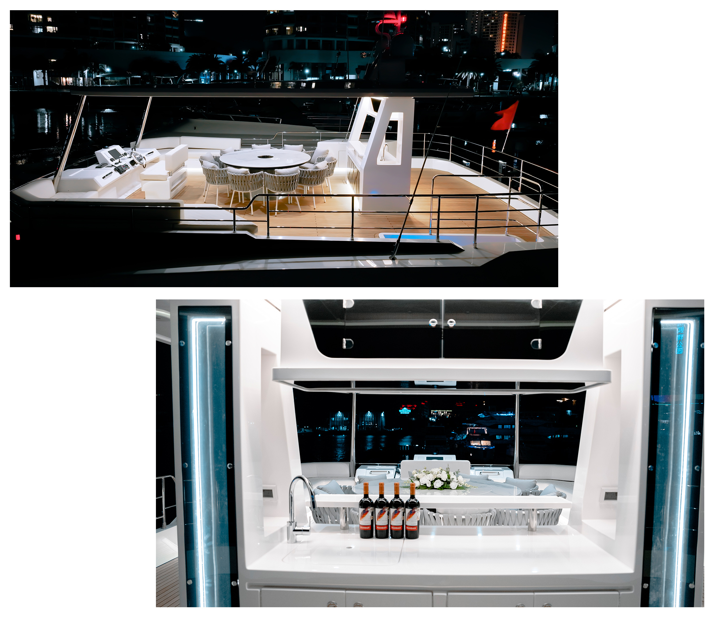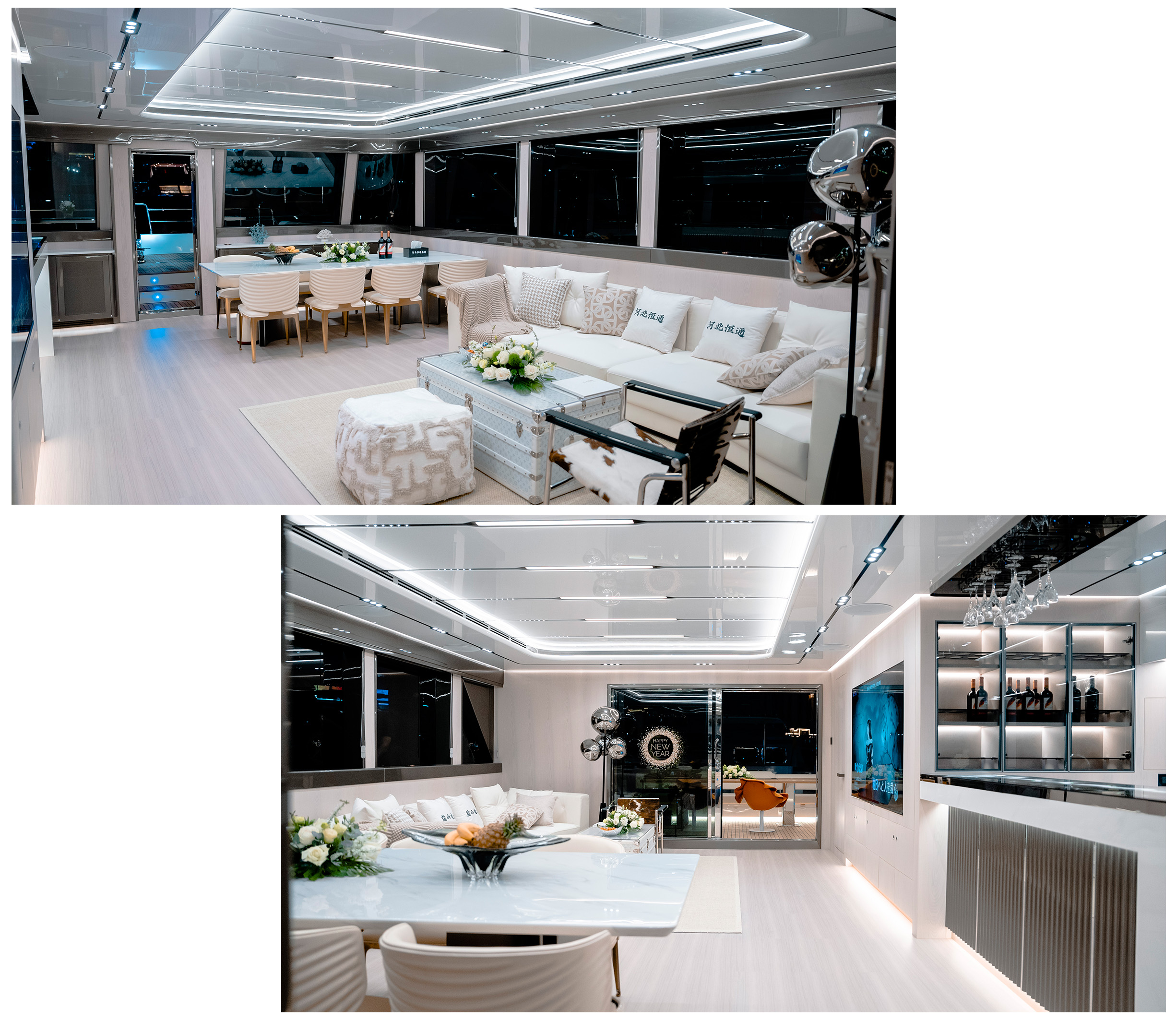 這款游艇的艉甲板及艏甲板均設(shè)有大面積沙發(fā)。當(dāng)游艇在大海中破浪前行,乘客可以愜意地坐在沙發(fā)上,沐浴著溫暖的陽光,吹拂著清新的海風(fēng),盡情感受馳騁海洋的無限快樂,享受與大海親密接觸的美好時(shí)光。簡而不凡,商務(wù)休閑的奢適光韻