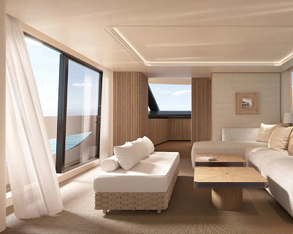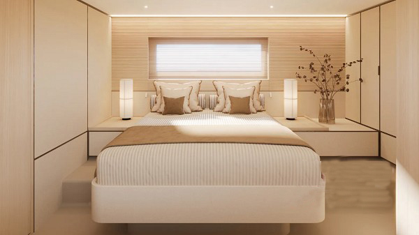 同時,游艇使用了可持續(xù)船上材料,包括使用軟木代替柚木、艙壁和甲板的生態(tài)凝膠涂層、回收織物和 FSC(森林管理委員會)認(rèn)證的木材。Matteo Thun 強調(diào)了材料的選擇如何專門針對該系列的輕量級和可負(fù)擔(dān)的功能,同時仍然保持“經(jīng)濟之美”。