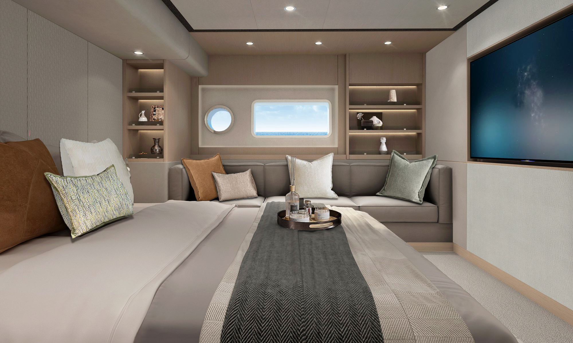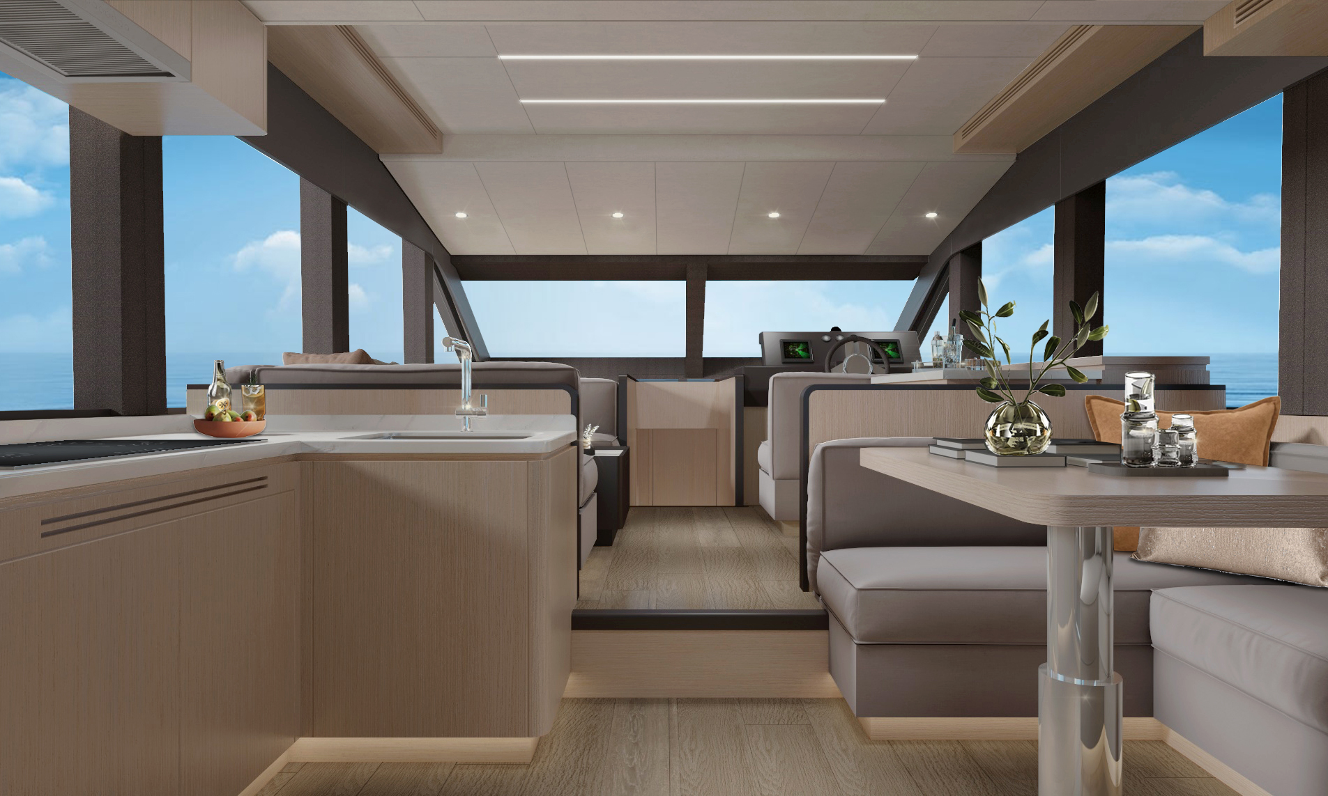 直觀的設計體現(xiàn)了硬朗中帶著柔和的曲線元素,開放式空間和舷窗為內(nèi)部提供充足光線,讓您坐享廣闊視野的同時,也能擁抱清涼海風。