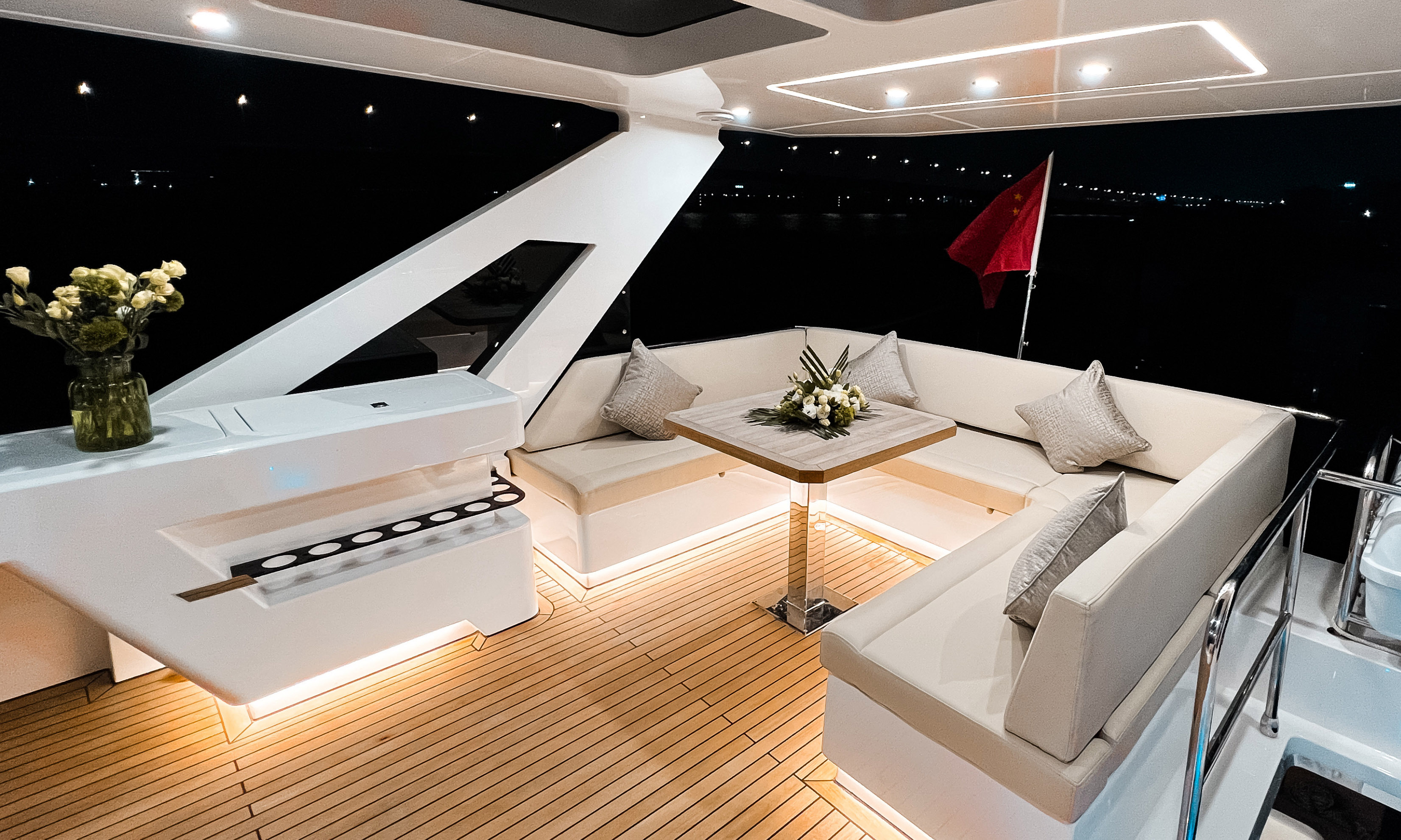 陽光甲板搭配U字舒適沙發(fā),形成私密的社交娛樂空間。