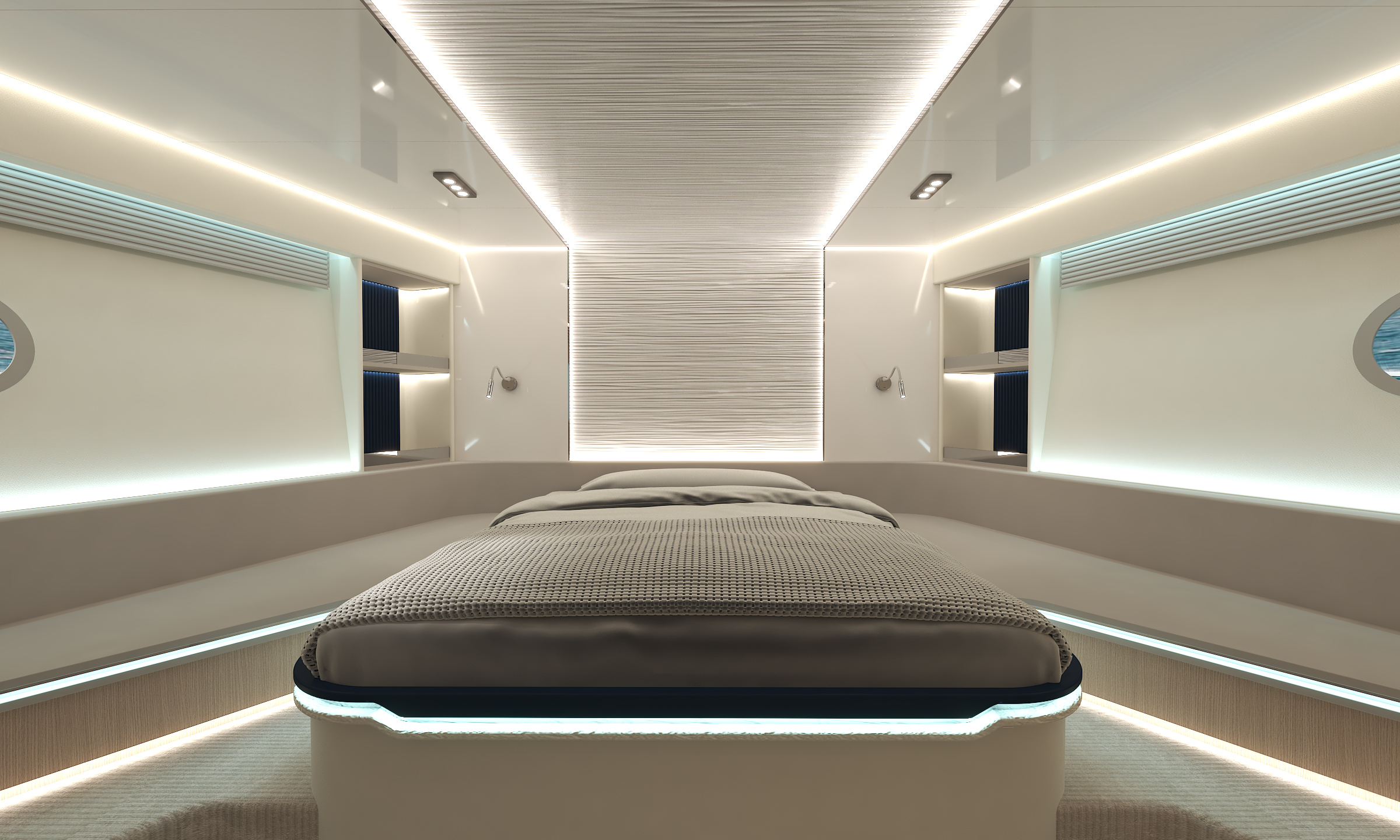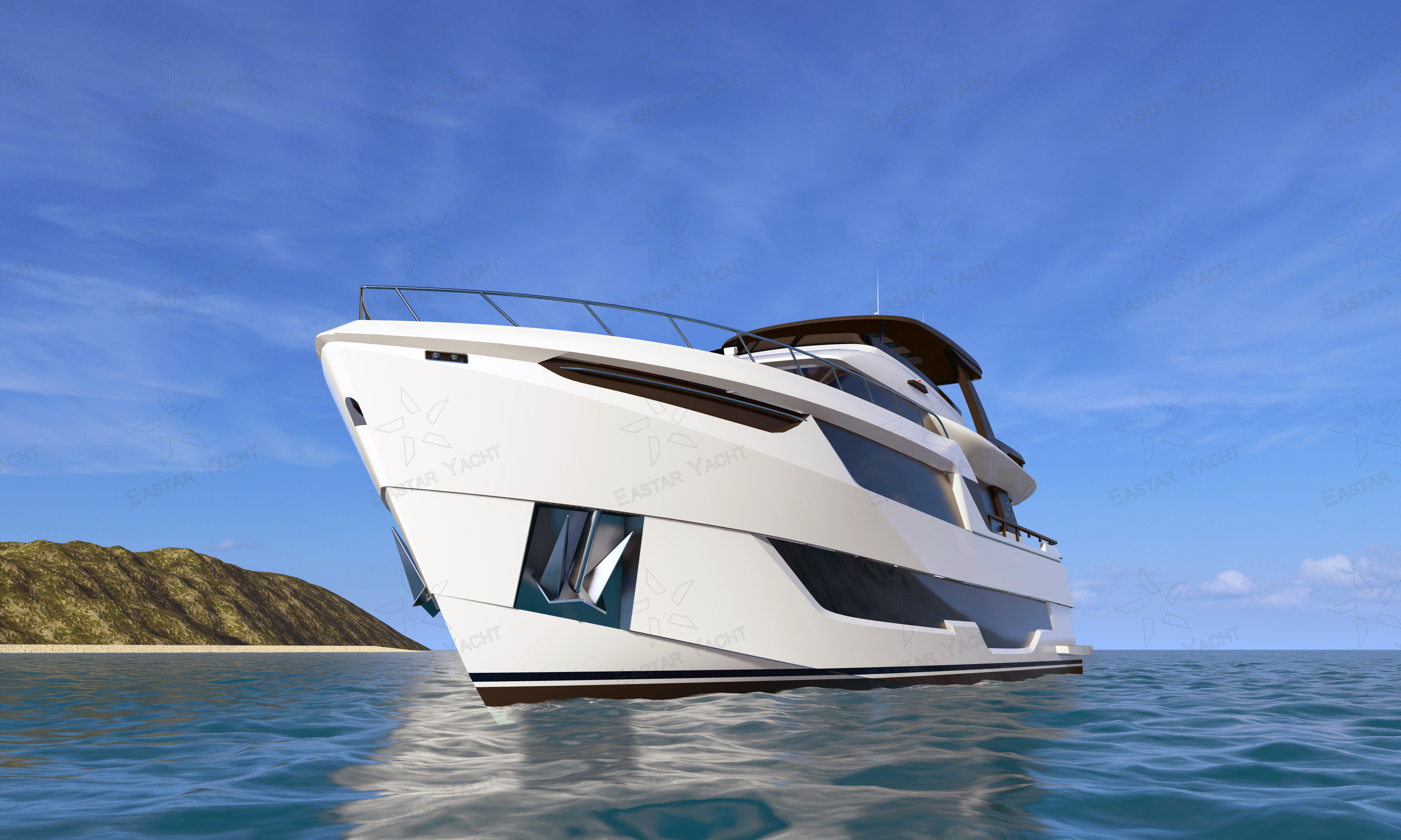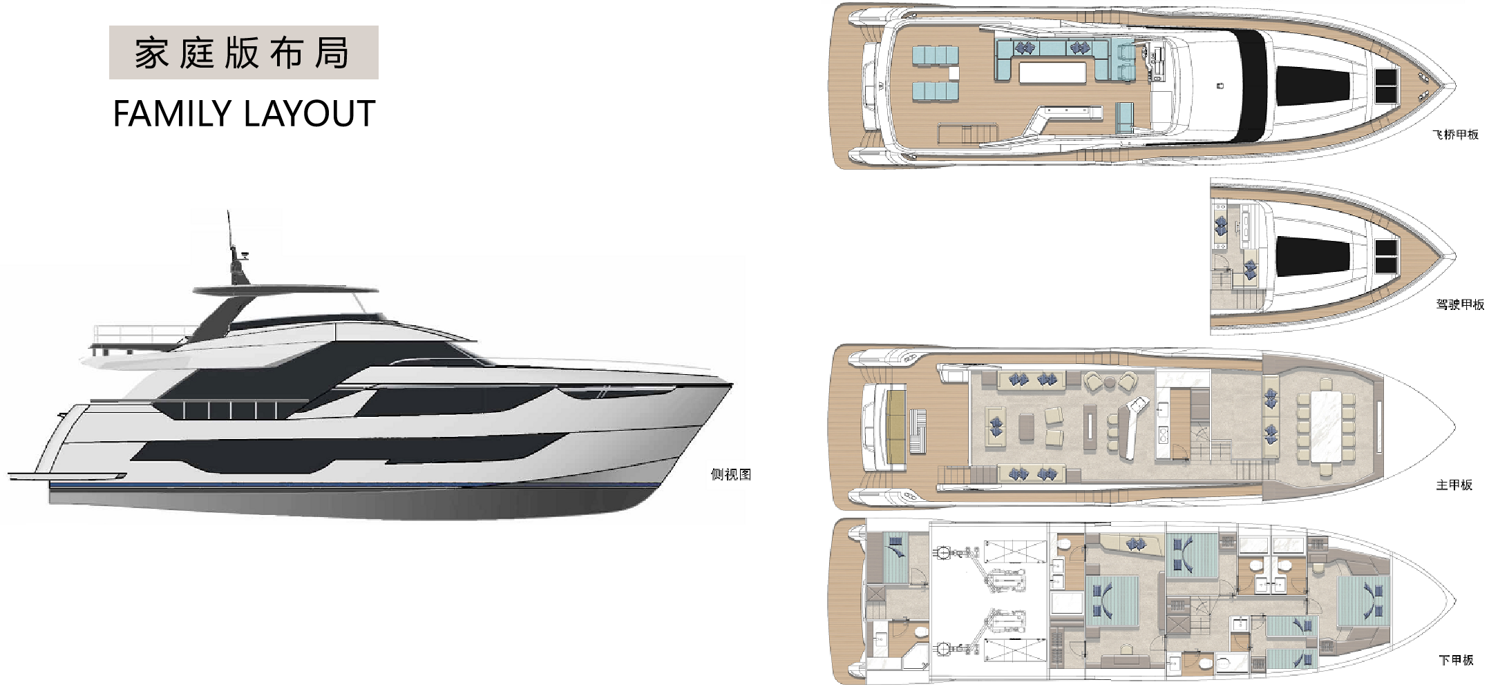 這艘游艇擁有令人驚嘆的前后甲板設(shè)計,空間寬闊得仿佛能容納整個海洋的遼闊。