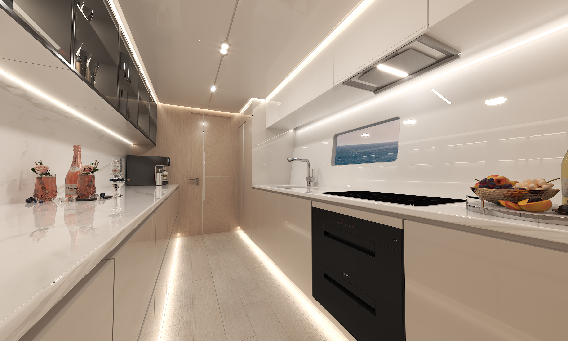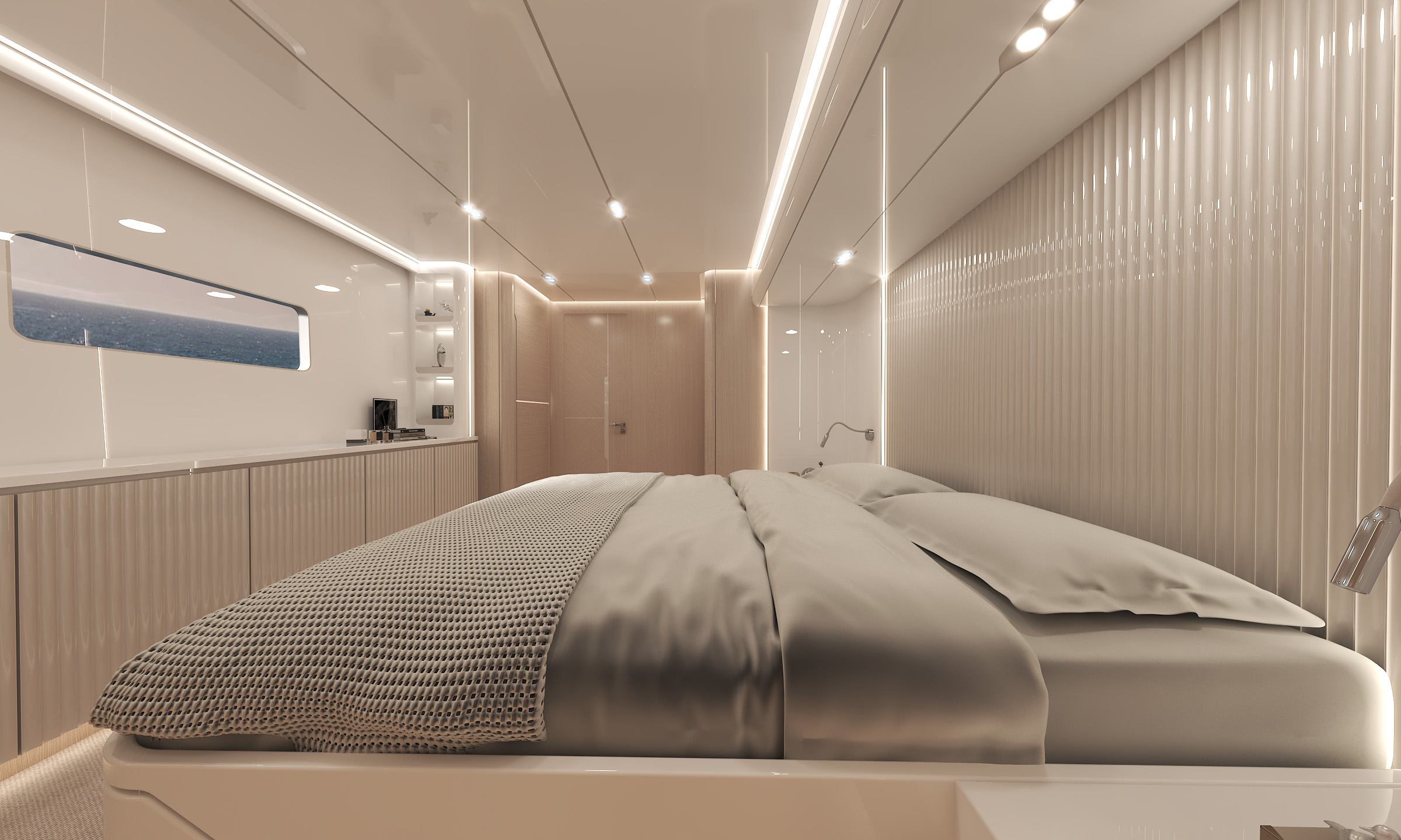 曲面飛橋甲板獨(dú)具匠心,通過獨(dú)特的弧線形設(shè)計(jì)拓寬船側(cè)窗戶面積,讓自然光線如瀑布般傾瀉而入,不僅大幅提升室內(nèi)采光效果,更賦予船內(nèi)開闊通透的視覺感受。