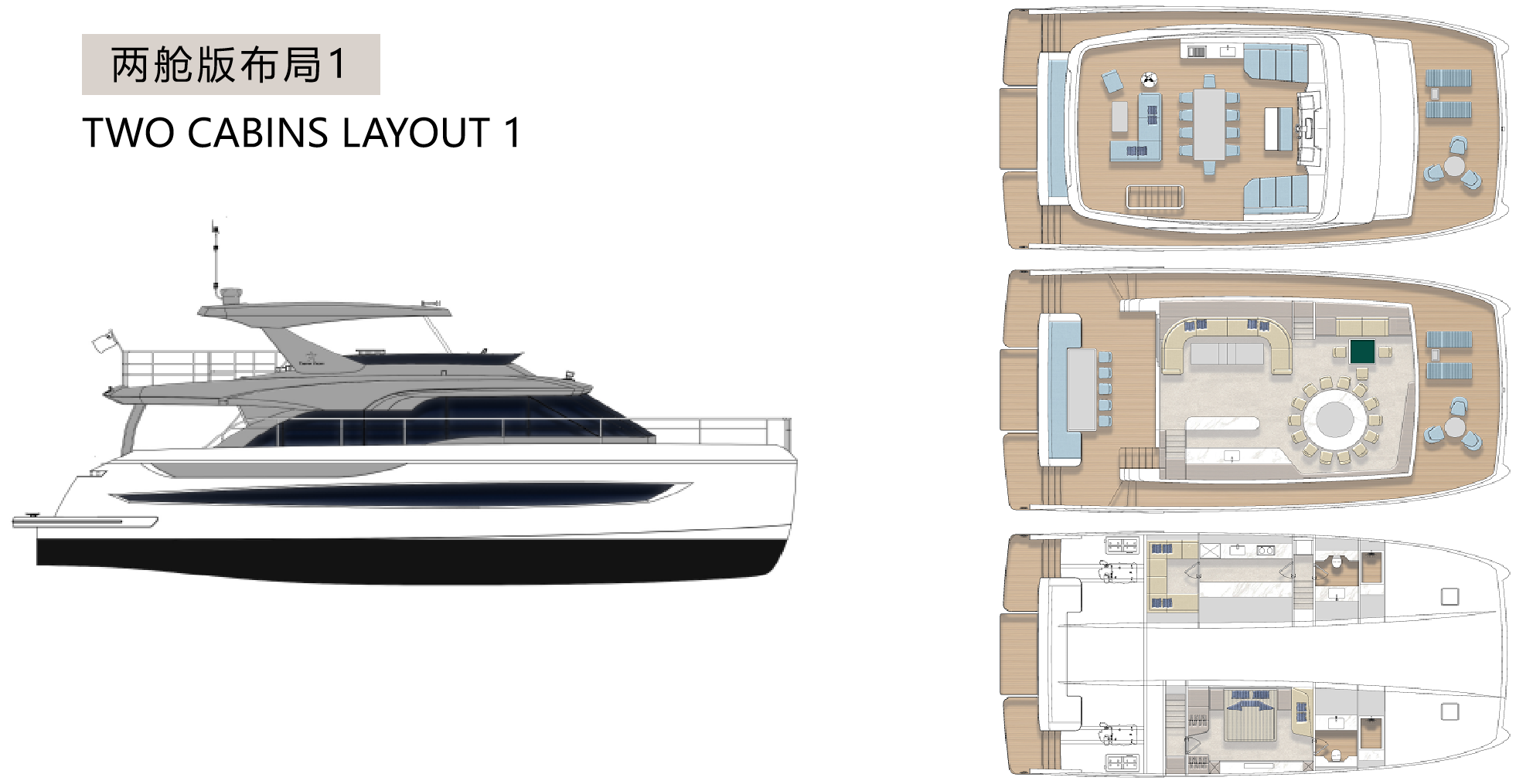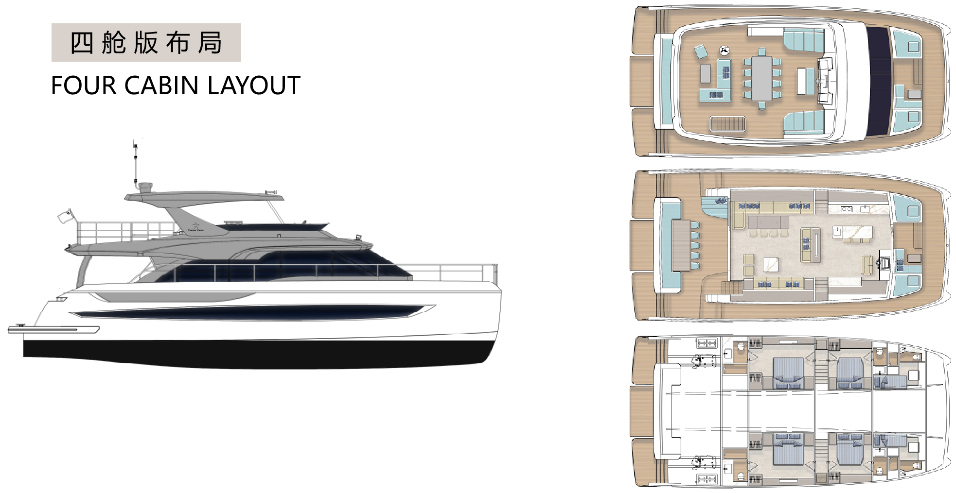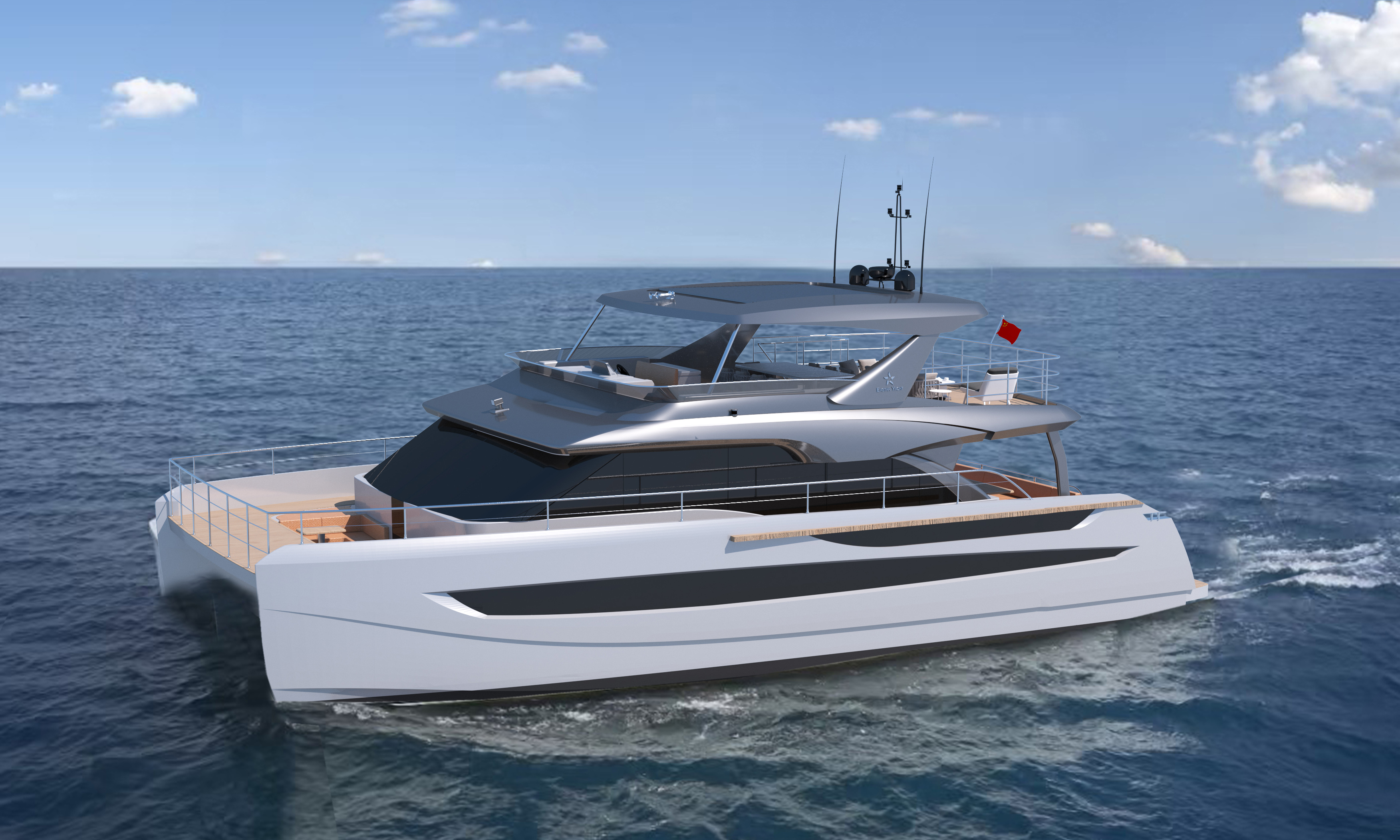 TY660雙體游艇以突破性設(shè)計(jì)重塑海上生活美學(xué)。其外形采用超前創(chuàng)新輪廓,流暢干練的弧線勾勒出飽滿優(yōu)雅的身姿,既彰顯尊貴氣度,又將功能性與美感完美融合。