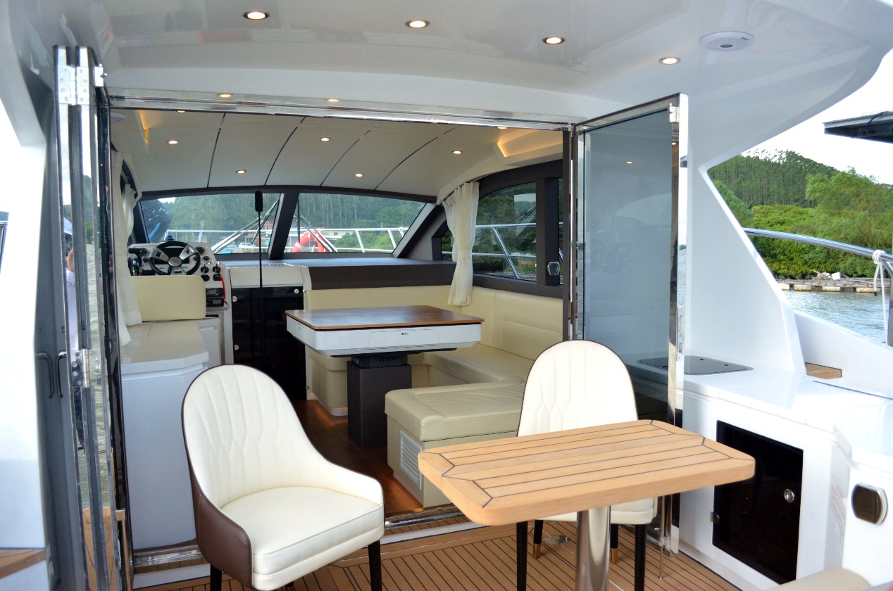 36尺的船,船寬達到驚人的3.36米,船艇更自帶休閑功能區(qū)與商務休閑接待區(qū),工作娛樂兩不誤。游艇還配置800升容積油箱,比市面上的游艇平均多出三分之二的容積,擁有超長續(xù)航能力。