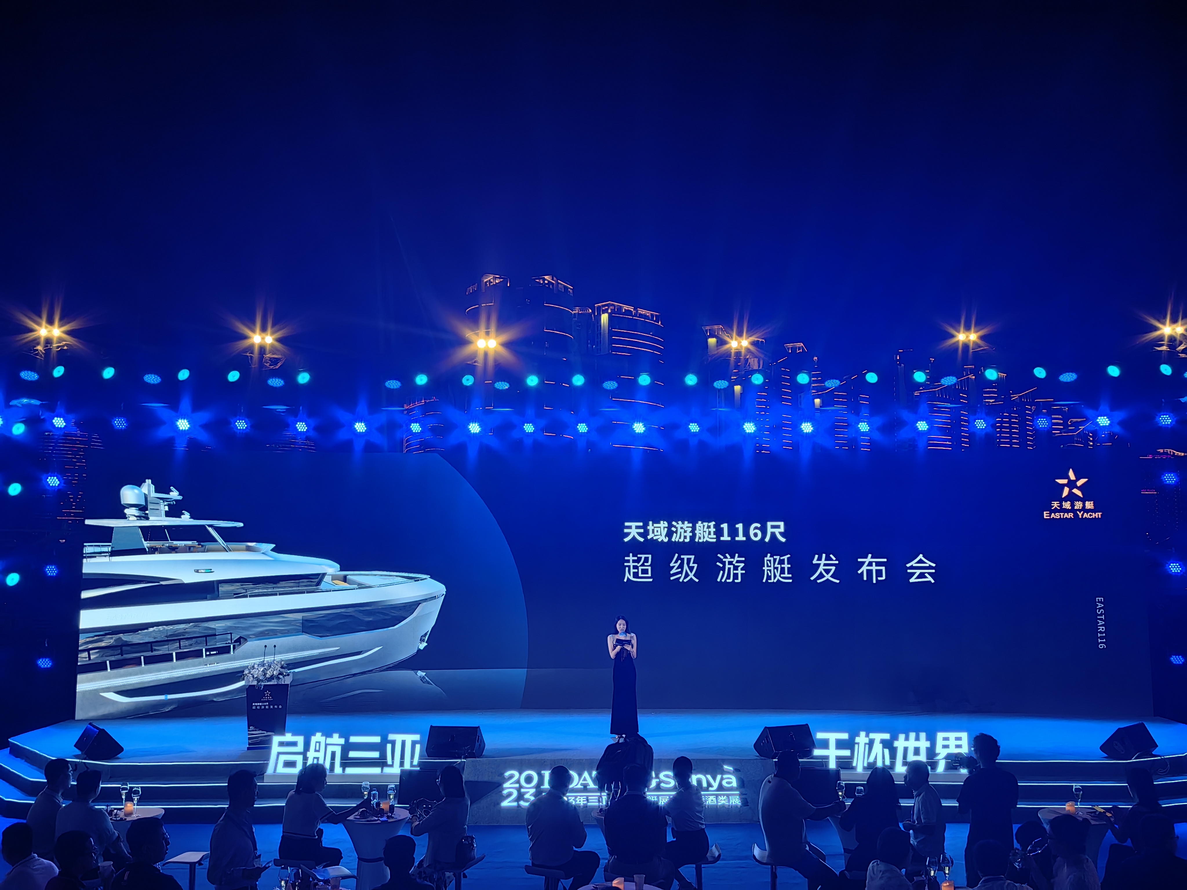 4月15日天域游艇在三亞國際游艇中心召開“璀璨之夜 見證奇跡——天域游艇116尺超級游艇發(fā)布會”,發(fā)布會現(xiàn)場,現(xiàn)場賓客、媒體及觀眾匯聚一堂,共同見證這特殊時刻。